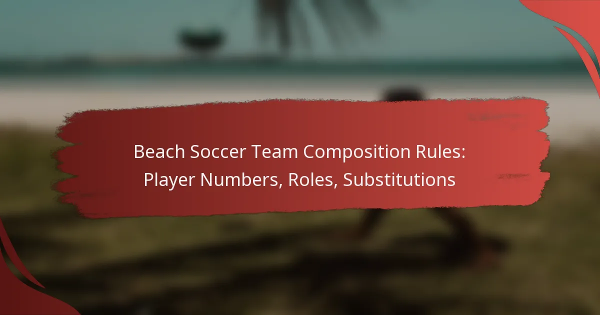 Beach soccer teams are governed by specific rules regarding player numbers, roles, and substitutions, which are essential for effective team management. Each team typically features a diverse set of roles that contribute to overall strategy, while unlimited substitutions allow for player rotation to enhance performance and manage fatigue. Understanding these regulations is crucial for optimising team dynamics and gameplay effectiveness.